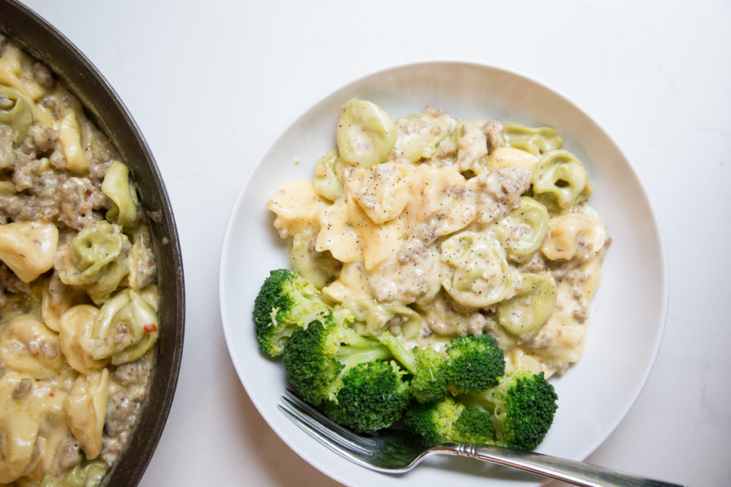- Serve Cheesy Sausage & Tortellini Skillet with veggies.
