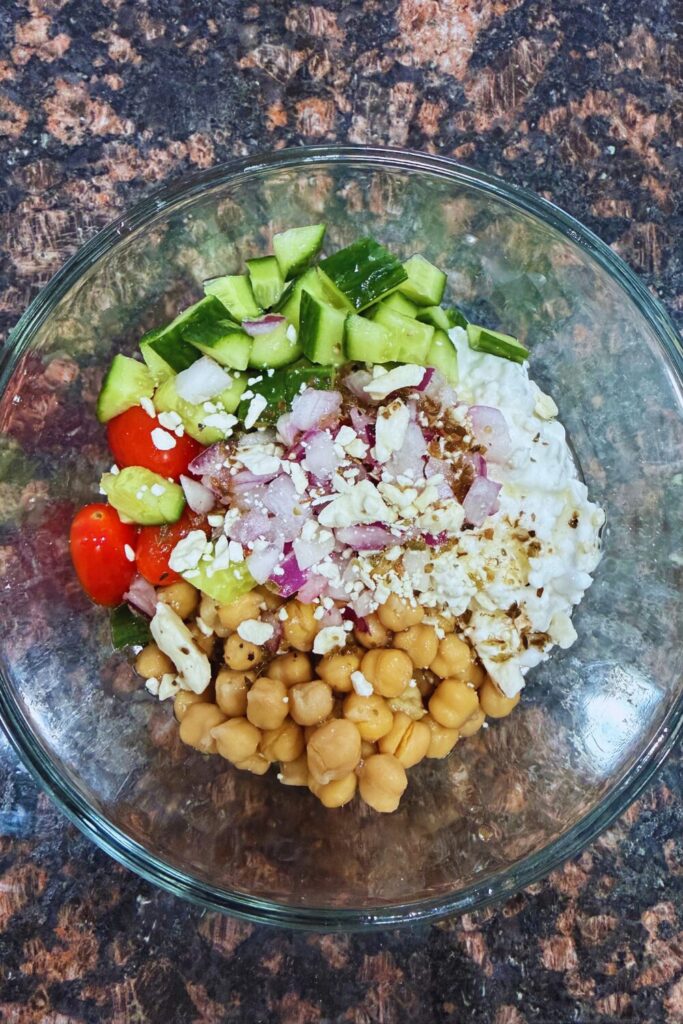 These Greek-inspired bowls combine creamy cottage cheese, hearty chickpeas, and crisp vegetables for a satisfying lunch or dinner that comes together in minutes.