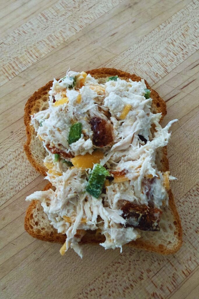 - Chill and serve Jalapeño Popper Chicken Salad on toast, crackers, or sandwich.