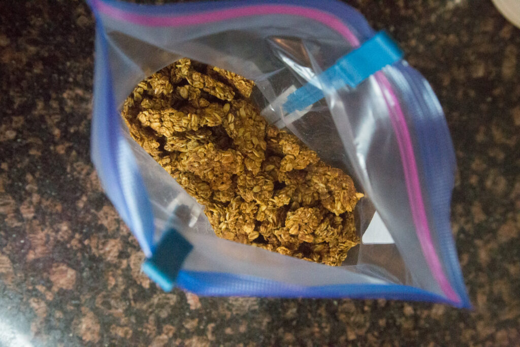 I used my metal spatula to ‘scoop’ out the granola and break it into chunks.